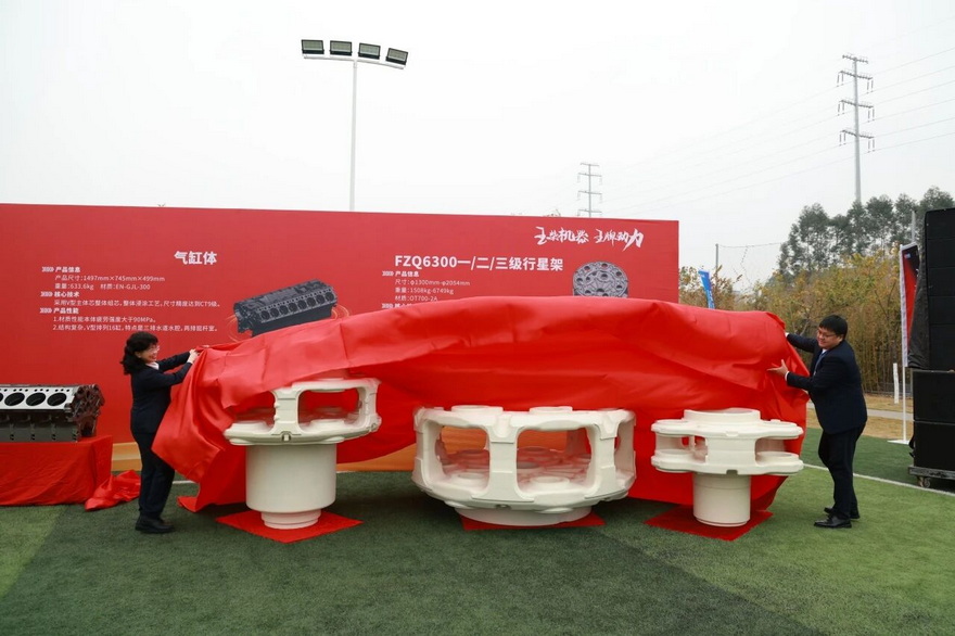 大会核心环节发布了零部件线18组战略产品,涵盖机床、曲轴、气缸体、气缸盖、行星架、整体桥壳等,玉柴集团党委副书记关敏、玉柴股份副总经理陈隆及零部件线领导班子与客户代表一一进行揭幕。